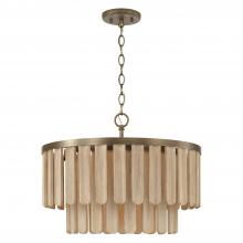 Handcrafted of mango wood, the Jada Dual Mount celebrates muted earthtones and modern organic style. The subtly distressed Nordic Grey wood adornments are carved to bring elegant texture and depth to the tiered form, complemented with the Dark Brass metal frame. Can be hung as a pendant or semi flush.