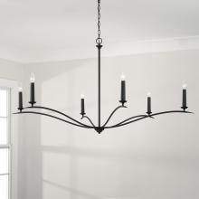 Soft curves create classic elegance in the Grady Chandelier. The round candle sleeves complement the sleek, elongated silhouette, while the Black Iron finish adds dimension to any space.