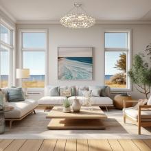 • Draws inspiration from the natural elements and colors found in coastal areas aiming to create a relaxed and breezy atmosphere.