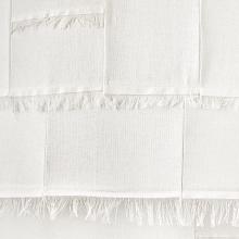 Taking a nod from current distressed fashions, Baya’s soft, hand-sewn patchwork shade creates a light and elegant feeling. Its coastal cottage style and chic texture make an artsy transitional statement complemented by a leather tassel, comfortable dimmable lamping, and a Textured Plaster finish.