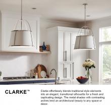 An effortless blend of classic style elements, Clarke’s transitional design is fresh and elegant. Its captivating metal or linen shade and contrasting frame lend architectural beauty to any space with a selection of sophisticated finishes to complement any décor aesthetic.