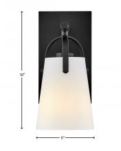 Clean and airy, Foster breathes composed simplicity into any bath space. Its softly tapered glass shade, suspended from arched handle prongs, creates a sophisticated transitional silhouette, enhanced by practical yet stylized details.