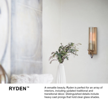 A versatile stunner, Ryden‘s chic, modern-industrial silhouette is practical yet stylish, featuring elongated glass shades held by heavy cast prongs. Classic finishes are complemented by black, fabric-wrapped cord and subtle detailing.