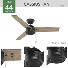 Hunter 44 inch Cassius Matte Black Damp Rated Ceiling Fan and Pull Chain (50260)