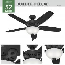 With a 52-inch blade span, the casual, traditional style of the Builder Deluxe LED ceiling fan will complement standard or large rooms in your home without overpowering them. A mainstay in the Hunter® product line, these ceiling fans with lights feature three-speed WhisperWind® motor technology to deliver quiet and ultra-powerful performance.