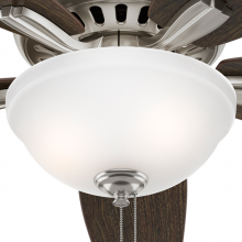 With its charming appearance, the Newsome low-profile ceiling fan with light will complement your casual design style. The clean line details throughout the fan body and blade irons work together to create a coherent design that will fit any standard or large room with a low ceiling. The handsome bowl light fixture provides your ideal ambiance while the 52-inch blades are powered by a three-speed WhisperWind® motor delivering superior air movement and whisper-quiet performance so you get all the cooling power you want without the noise. The Newsome Collection offers you the freedom to choose from many different sizes, light kits, and other options to maintain a consistent look throughout every room in your home.