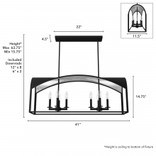 The Dukestown linear chandelier is a showstopping piece. Featuring metallic leaf detailing and striking arched silhouettes, this gorgeous piece masterfully balances traditional elegance with sophisticated style. Brighten up your kitchen or light up your dining room with this work of art from the Dukestown collection. Mix and match with other fixtures from this collection or from our ceiling fan designs.