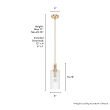 Hunter Gatz Alturas Gold with Clear Fluted Glass 1 Light Pendant Ceiling Light Fixture (19791)