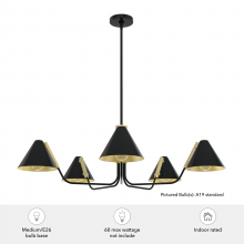 Hunter Grove Isle Matte Black and Modern Brass 5 Light Extra Large Chandelier Ceiling Light Fixture (19195)