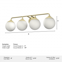 Hunter Hepburn Modern Brass with Cased White Glass 4 Light Bathroom Vanity Wall Light Fixture (19179)