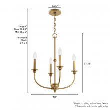 Hunter Southcrest Luxe Gold 4 Light Mini Chandelier Ceiling Light Fixture (48067)