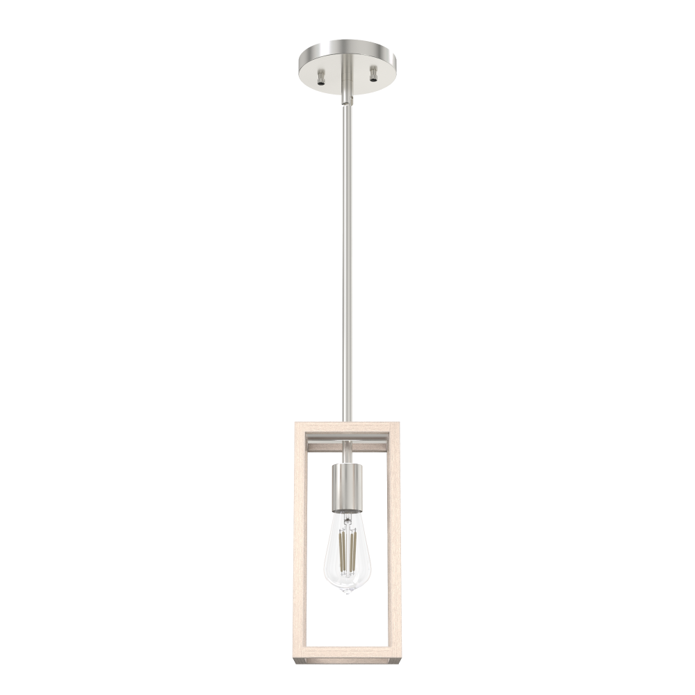 Hunter Squire Manor Brushed Nickel and Bleached Wood 1 Light Small Pendant Ceiling Light Fixture (19770)