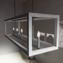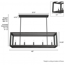 The openness of the Squire Manor linear chandelier coupled with the clean lines and wood-inspired texture gives it an airy and warm aesthetic. With a simple form and subtle wood grain detailing, this lantern-inspired light feels at home in any setting, from farmhouse to Mid-Century modern.