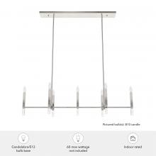Gathering under the glow of the Sunjai linear chandelier will turn your dinner into a party. Laugh and dine under this beautiful modern fixture perfect for kitchens and dining rooms. This chandelier is modern and meets glamourous with geometric adornments set into the clean-lined metal candles to add a touch of sparkle that will compliment any decor. Mix and match with other fixtures from this collection or from our ceiling fan designs.