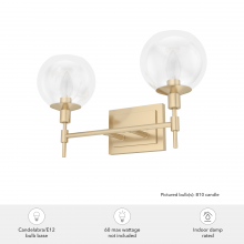 Hunter Xidane Alturas Gold with Clear Glass 2 Light Bathroom Vanity Wall Light Fixture (19761)