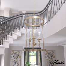 Hunter Xidane Alturas Gold with Clear Glass 3 Light Pendant Ceiling Light Fixture (19749)