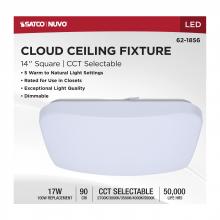 The SATCO NUVO 62-1856, 14-inch square LED Cloud fixture features 5 CCT selectable technology and a high 90 CRI rating, ensuring exceptional and uniform illumination. It is crafted with a durable, non-yellowing PMMA lens and is rated for damp locations, ma