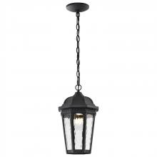 East River LED 8.25-inch outdoor hanging lantern finished in matte black with clear water glass, Smart Starfish enabled, featuring Color and White tunable CCT Selectable