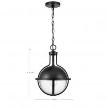 Lincoln; 1 Light Medium Pendant; Medium Base; 60 Watt; Matte Black Finish; Clear Seeded Glass