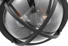 The striking Lincoln 60-7672 flush mount was inspired by an armillary sphere, consisting of a framework of elegant rings. Broad, circular bands surround the orb, and knob details in a matte black finish enhance the clear seeded glass for a prominent, styli