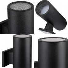 This cylinder fixture is a stylish addition to residential or commercial outdoor spaces;Modern outdoor wall lantern perfect for illuminating porches, balconies, patios, barns, and exteriors;Sleek design with a modern round exterior and square back plate of