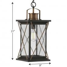 Clear seeded glass panes add an extra pop of rustic personality.;An antique bronze finish complemented with antique copper accents adds warmth and character as the lantern infuses your home with gentle illumination.;A rustic X-brace design decorates each s