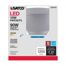 Satco's S29449 LED 15-watt, PAR38 lamp maintains the familiar look of the Halogen PAR and Gen1 LED lamps they replace; but at 90 CRI and a higher lumens per watt ratio, it delivers superior light and improved efficiency. Designed for use in track, rece