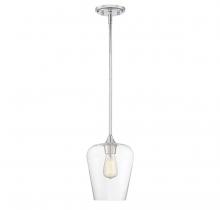 Get a pendant look with understated elegance when you get the Savoy House Octave 1-light pendant. It features a shade of curved clear glass, minimal detailing and a sleek polished chrome finish. Pendants are extremely versatile and can fit in many different spaces, such as kitchens, family rooms, great rooms, foyers, entryways, offices, bedrooms and bathrooms. The hanging height is adjustable and this pendant can be used on a sloped ceiling. Since the bulb is exposed, try using a stylized bulb (not included) like Edison style for a different twist! The chrome finish can be paired with chrome hardware or mixed with hardware in other finishes. Try the Octave with glam, transitional or contemporary style rooms for a chic look. When you choose a Savoy House lighting fixture, you can be certain you've selected a piece that will withstand the test of time.