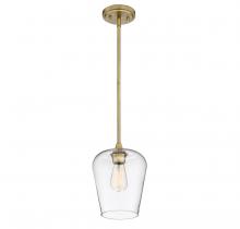 Get a pendant look with understated elegance when you get the Savoy House Octave 1-light pendant. It features a shade of curved clear glass, minimal detailing and a rich warm brass finish. Pendants are extremely versatile and can fit in many different spaces, such as kitchens, family rooms, great rooms, foyers, entryways, offices, bedrooms and bathrooms. The hanging height is adjustable and this pendant can be used on a sloped ceiling. Since the bulb is exposed, try using a stylized bulb (not included) like Edison style for a different twist! The brass finish can be paired with brass hardware or mixed with hardware in other finishes. Try the Octave with glam, transitional or contemporary style rooms for a chic look. When you choose a Savoy House lighting fixture, you can be certain you've selected a piece that will withstand the test of time.