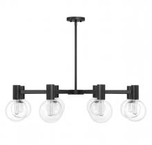 This Savoy House Wright 8-light chandelier showcases large-scale streamlined style that makes it ideal for bigger rooms. Round clear glass shades add an extra dimension and extra protection for the light bulbs within. Matte black finish. Wright is 40" in width and has an adjustable height ranging from 10.5" to 64". Comes with four 12" downrods and one 6" downrod. Uses 8 standard size bulbs of up to 60 watts per bulb (bulbs not included). We recommend using tubular shaped bulbs.