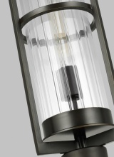 Clear fluted glass shades give the Alcona series a refined industrial look. The elegant square backplate and metal center ring provide a floating glass effect. The Alcona one light outdoor pendant fixture creates a warm and inviting welcome presentation for your home's exterior. Available in a handsome Black or Antique Bronze finish.