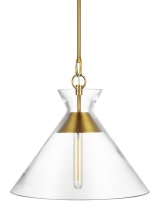 The Atlantic series from Chapman & Myers for Visual Comfort Studio Collection features globe and conical Clear Glass pendants paired with rich Burnished Brass and pure Polished Nickel hardware; these work well singularly or in multiples to elevate any room. The lamping suspends from the center, and appears floating within the Clear Glass shade. Coordinating table lamps feature white linen shades and lend a bright, cozy ambiance to any space.