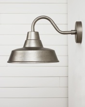 The Barn Light one light outdoor wall fixture in weathered pewter enhances the beauty of your property, makes your home safer and more secure, and increases the number of pleasurable hours you spend outdoors. The classic Barn Lights are hand crafted in aluminum and coated in a Galvanized or Blacksmith finish. Ideal for large or heavily trafficked outdoor areas that need plenty of downward directed light. The oversized Barn Lights make great accents to any commercial lighting plan or residential garage entry, shed, or patio. To customize your look, a 6" extender is included with every fixture. Also available as Dark Sky with four size options to choose from.