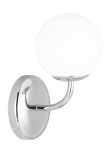 The Galassia one light wall sconce by AERIN in polished nickel perfectly balances a glass globe and curving teardrop frame, giving it a contemporary look. The white glass casts a soft, welcoming glow over a space. This piece works particularly well in a hallway.
