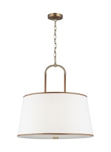 The Katie four-light shade pendant leather straps contrast with metal and white linen fabric shade to round out a timeless design. Available in: Time Worn Brass with Brown Leather or Polished Nickel with Black Leather. The combination of leather and steel gives this round chandelier equestrian flair.