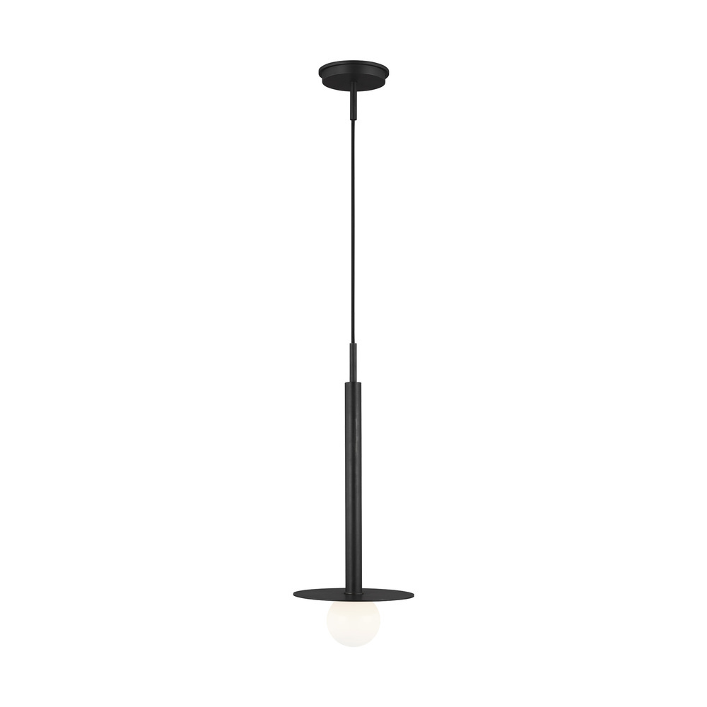 Nodes task, ceiling and wall lighting is minimal yet bold, highlighting Kelly's distinctive juxtaposition of mixed-materiality and curvilinear form. Light radiates from milk glass globes set against metal discs. All fixtures can be used or without the discs. The cast canopy is available in Burnished Brass or Midnight Black. Hanging fixtures within this family feature black fabric cords, while pivot sconces can be cord and plug or hard wire.