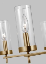 The Zire five light chandelier in Satin Brass finish embodies simple clean lines that strike a perfect balance of elegant yet minimalist design. Each of the lights sits on the round bottom rim, featuring an Edison-inspired design highlighted by a cylindrical glass shade. The assortment includes nine-light, five-light, and three-light chandeliers, a five light linear, one-light large and mini-pendants, and one-light, two-light, three-light and four-light wall/bath fixtures. A stylish and elegant addition to any room in the house. Zire is offered in a Brushed Oil Rubbed Bronze, Brushed Nickel, Chrome, Satin Brass or Midnight Black finishes.